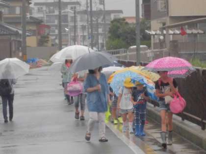 この雨の中、登校指導に出かけましたが、どの班も班長さんを先頭にきっちりと列を作って安全に登校出来ていました。