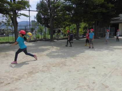 今日の中間休みは,夏休み前最後のみんな遊びをしました。みんな仲良くドッチボールを楽しんでいる様子でした。