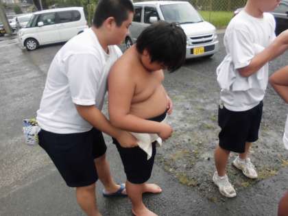 続いては男子の部です。本格的に「まわし」をつけてもらい出場した選手もいます。