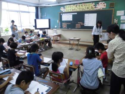 10日の5時間目は3年2組の研究授業でした。たくさんの先生に見られて緊張しながらも,みんな背すじをしっかりのばして授業をうけることができました。
