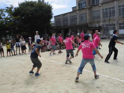 先生方も優勝チームに飛び入り参加して、運動場は大盛り上がりです!