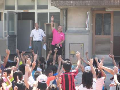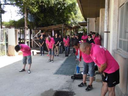 閉会式で全員運動場に集まり、皆さんにお礼をして終了しました。