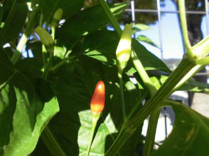 今朝の写真は、ワンダフルワールドで栽培している「島とうがらしの実」です。