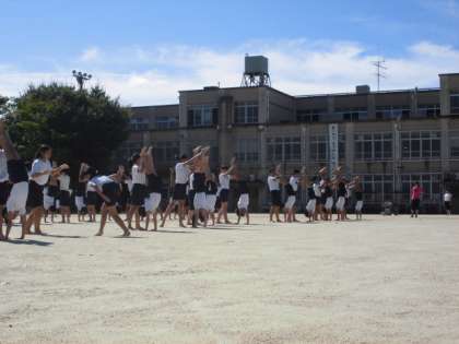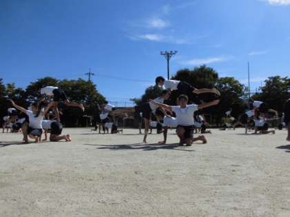 青空のもと、1・2時間目は高学年の運動会練習です。