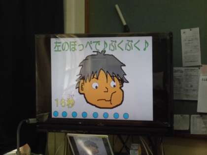1年生もずいぶん手馴れてきました。口に溶液を含んで、TV画面の映像を見ながらしっかりと口の中をきれいにします。