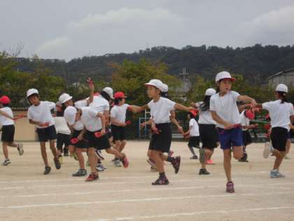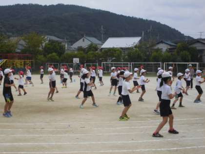 雲が少しずつ厚みを増してきてますが、1・2時間目は中学年(3・4年)の運動会練習です。