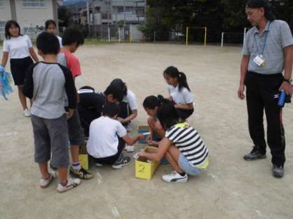 前回は、各係ごとに仕事内容の確認などを教室でやりましたが、今日は、本番をイメージして、運動場でリハーサルを行なう係が多いようです。