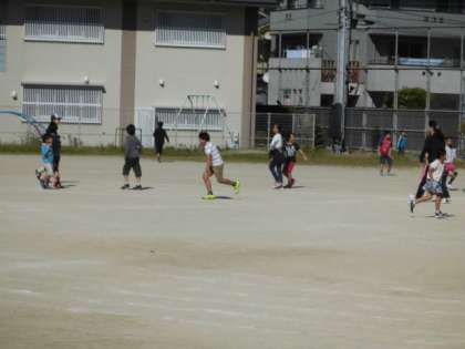 最初は、縦割り班ごとに教室に集まり、どんな遊びをするか・・・を全員で話し合い決定します。その後は、天気が良かったので、ほぼ全員が運動場に出てきました。