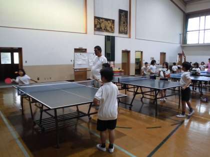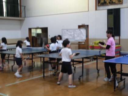 まずは「卓球部」。3年生から6年生までいつも大人数で大変活気があります!