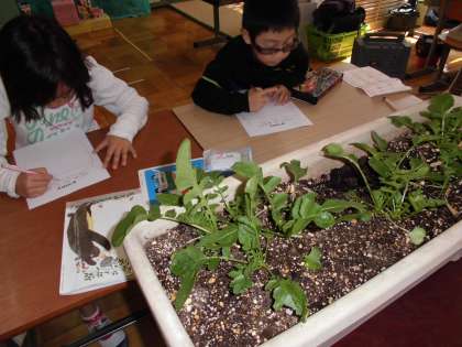 葉っぱ1枚1枚の成長はとても速いです。土の中にはどんな立派な大根ができるかとても楽しみです。