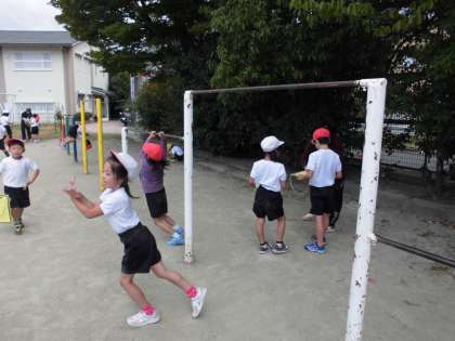 寒くなりましたが,外で元気に体育です!