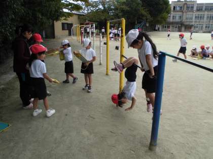 1年 体育「てつぼうあそび」