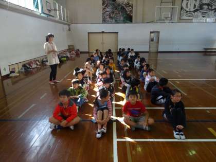 午後から安祥寺中学校の体育館に3小学校の6年生が集まり