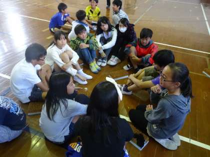 その前に、今回、安朱・山階・西野の6年生が一同に集合したので、短時間ではありましたが、数人でグループを作り自己紹介をしました。