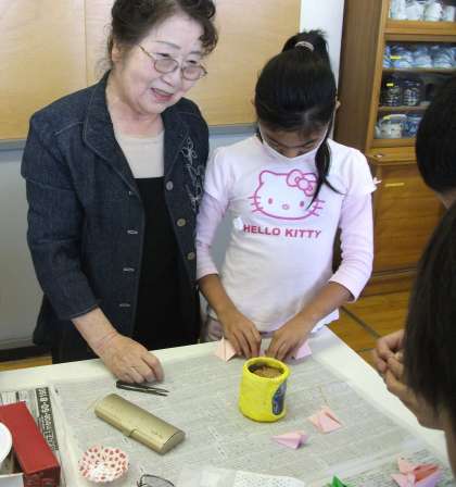 手芸料理クラブでは,地域の岡田さんに来ていただいて,折り紙を教えてもらっています。