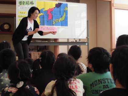 キム先生に韓国の挨拶や食べ物について楽しく教えてもらいました。