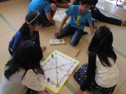 「ユンノリ」と呼ばれる、日本の「双六(すごろく)」で会場は大盛り上がりです。