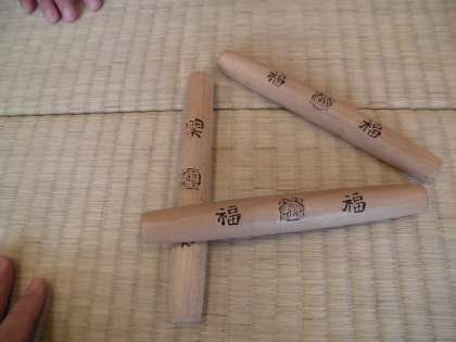 サイコロではなく細長い4本の木の棒を投げて、出た目の数だけコマを進めていきます。