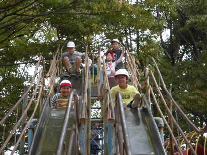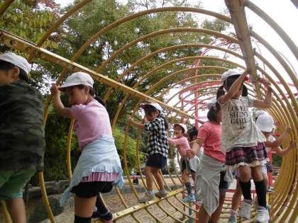 いつもの運動場の遊具よりもはるかにスケールが大きく、みんな大はしゃぎ!