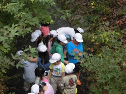 赤組、白組順番に川遊びをしました。裸足になりサンダルに履き替え水に浸かっていましたが、少し冷たかったようです!
