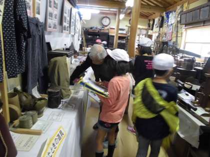 昔の道具がぎっしりとありました。社会では,先に「農家の仕事」をしてからですが,12月は,風邪ひきや,インフルエンザの流行が心配……出かけるには寒すぎる……時期のよいときに行きました。
