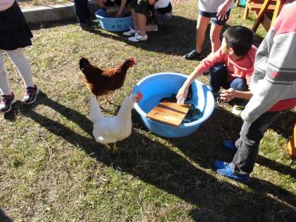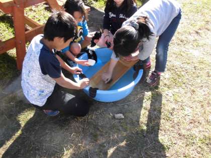 昔の暮らし体験で「洗濯板を使って,せんたくしよう。」水が冷たい!腰がいたい!