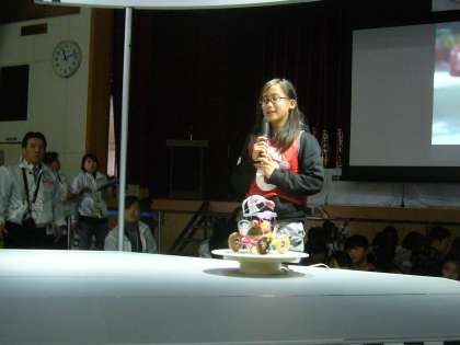 デザイン・パフォーマンスはステージ上に自慢の作品を披露して、持ち時間で懸命にアピールします!これだけ大勢の前でマイク片手にしゃべると緊張するものですが、胸を張って堂々としていました。