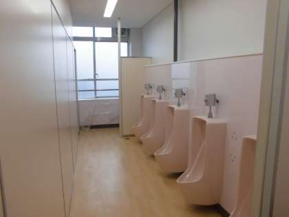 この週末も、南校舎のトイレ改修工事は完成に向けて、休む間もなく進められていました。