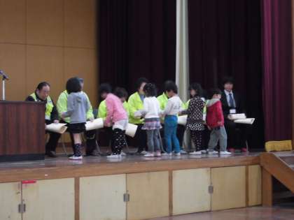 最後に、1年生の代表児童から記念品が手渡されると大きな拍手に包まれました。