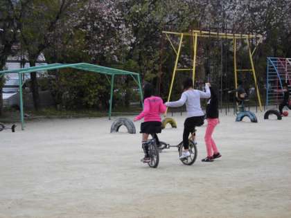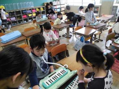 今日も朝から運動場では、ドッジボールに一輪車など。教室では鍵盤ハーモニカの練習に励んでいるお友達も!