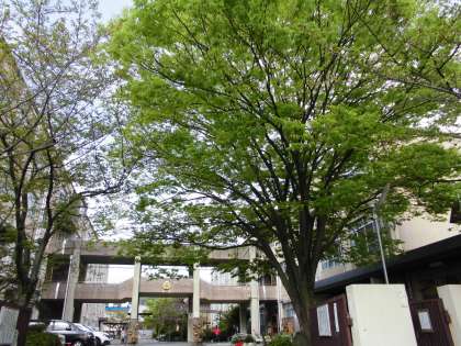 校門付近は、すっかりと桜の花びらが散ってしましましたが、代わって緑の葉が広がりより一層、明るさが増してきました。