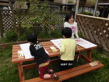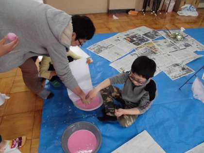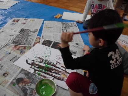 3,4時間目の図画の時間に桜の木を描きました。ドリームトープで桜の木の枝振りをじっくり観察しながらクレパスを使って描きました。次に,ドリッピングという画用紙の上で筆をふって絵の具をたらす技法を使って桜の葉を表現しました。花びらは和紙を染色し,ちぎり絵にします。出来上がりが楽しみです。