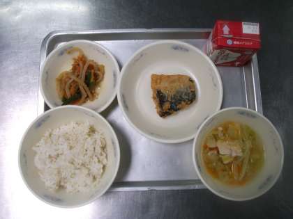 今日の給食は「麦ごはん・牛乳・さばのたつたあげ・野菜のきんぴら・キャベツの吉野汁」でした。「さばのたつたあげ」には衣に初めて「米粉」を使いました。