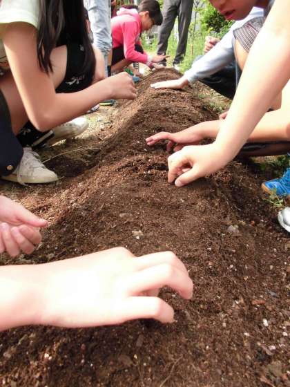 今年の環境美化委員会では,巨大ひまわりを育てます。