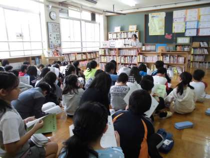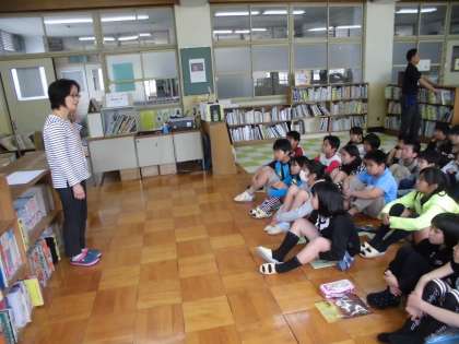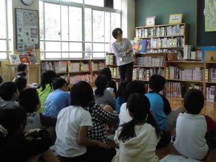 本の読み聞かせをしていただき,子どもたちは夢中で聞いていました。