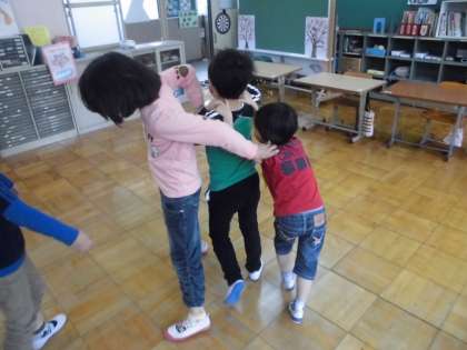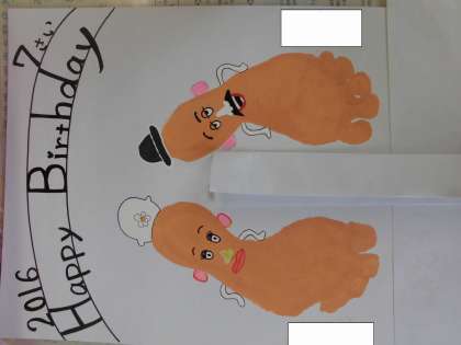 先日,誕生日を迎えたお友達を祝って,お誕生日会を開きました。歌を歌ったり,プレゼントを渡したり,ゲームをしたりと楽しみました。プレゼントは,足型アートです♪
