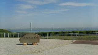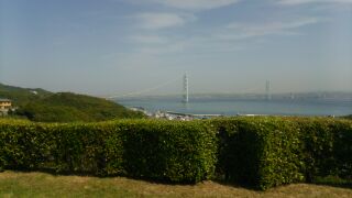 明石海峡大橋をバックに写真を撮りました。