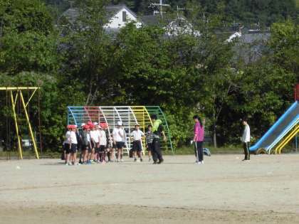 朝から青空のもと,6年生も元気よく気持ち良さそうに運動場で駅伝練習に励んでいます!