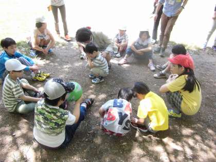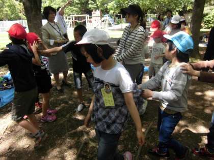 今日は,山科区小学校の育成学級児童が東野公園に集まり,「なかよし会」をしました。新しく入ってきたお友達の紹介をしたり,みんなで楽しくゲームをしたりしました。お天気にも恵まれ,楽しく活動することができました。