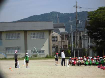 運動場からは,体育の授業でリレー遊びに励む元気な子供の声が聞こえてきます。