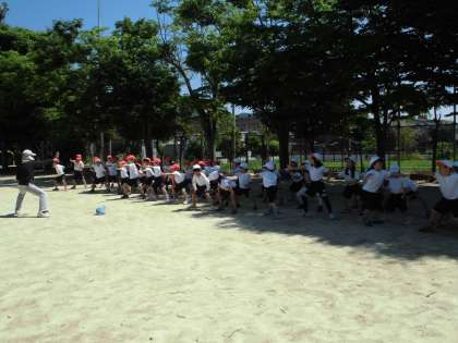 校庭で体育もできました。