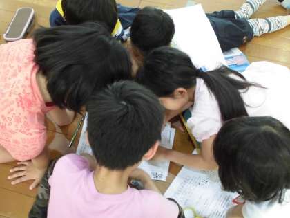 1年生の行きたいところを聞きながら話し合いをすすめている2年生…