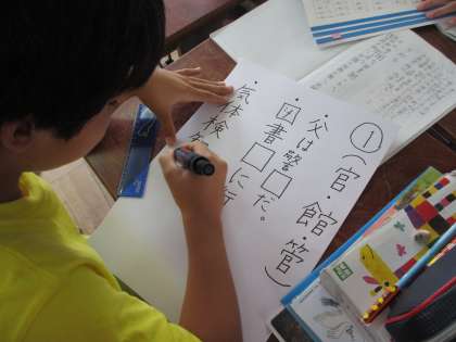 同じ部分をもち,同じ音の漢字の学習をしました。授業の後半で,班で問題作りをしました。どの班もよい問題ができました。
