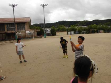 学習の終わりにはみんなで水鉄砲をして楽しみました。