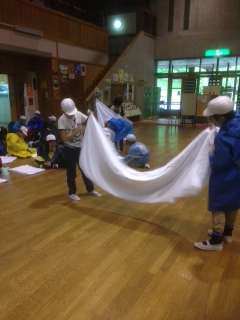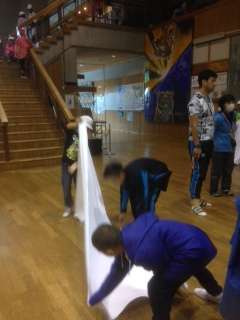 ここで、男女で大きな差が出始めました。男子はシーツを畳むのに悪戦苦闘‼︎何度も何度もやり直しています。ウォークラリーの時間も迫ってきました…頑張れ男子‼︎