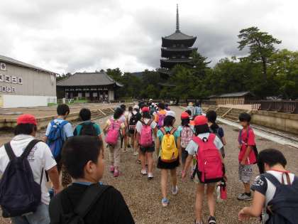 バスを降りた後は,まずは興福寺国宝館に行き,阿修羅像を見ました。その後は五重塔の前で写真をとり,奈良国立博物館に入りました。