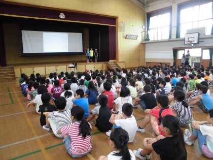 パソコンを用いてスクリーンに映し出される映像は,数々の工夫がなされたいへん見やすく,また,クイズを交えるなど見ている側を退屈させない立派なものでした。
