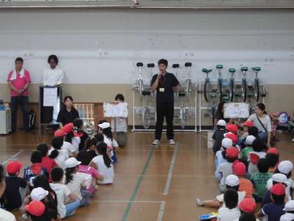 すべてのプログラムが終了し,PTA会長・おやじの会会長・校長先生のお話もしっかりと話しての目を見て耳を傾けていました。最後には,参加賞のおやつをもらい,みんな満足げに家路につきました。
