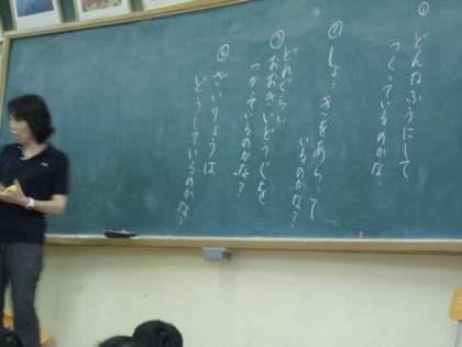 みんなで作った学校の模型から,どんな人が働いているのか考えてみました。