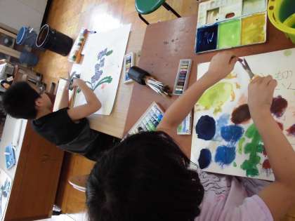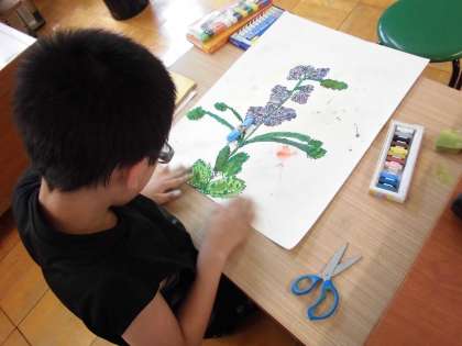 校長先生が好きだという紫陽花♪少しずつ色を変えながら丁寧に彩色しました。